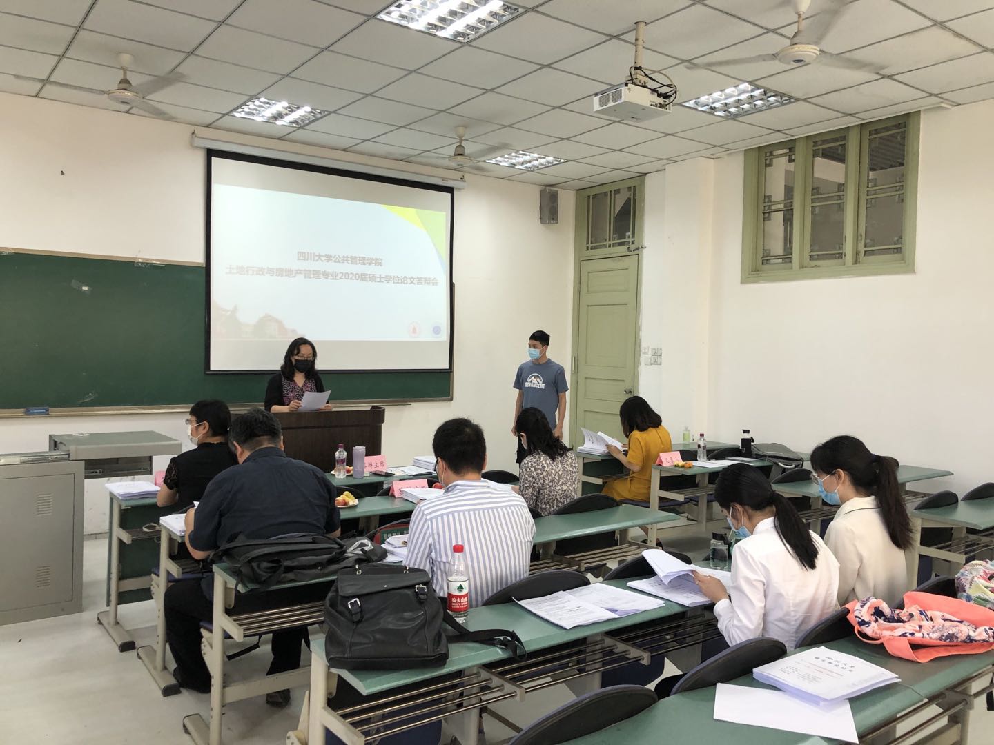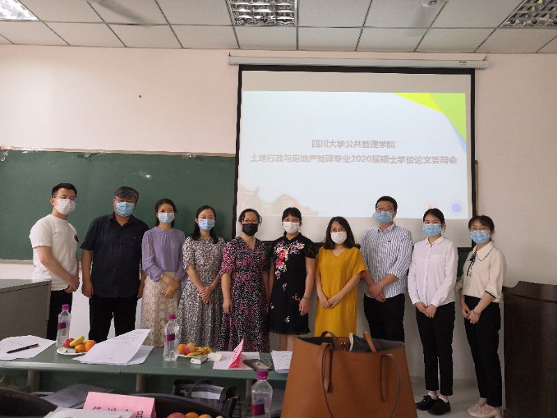 2020年5月18日,土地资源与房地产管理系2020届硕士学位论文答辩会在yl23455永利官网214教室成功举行。四川农业大学管理学院院长傅新红教授应邀作为答辩主席,主持了本次答辩会。答辩委员会成员包括四川省社会科学院高杰副研究员、土地资源与房地产管理系刘润秋教授、杨智恒副教授、马爱慧副教授、董欢副教授。土地行政与房地产管理专业4名研究生参加了此次答辩会。